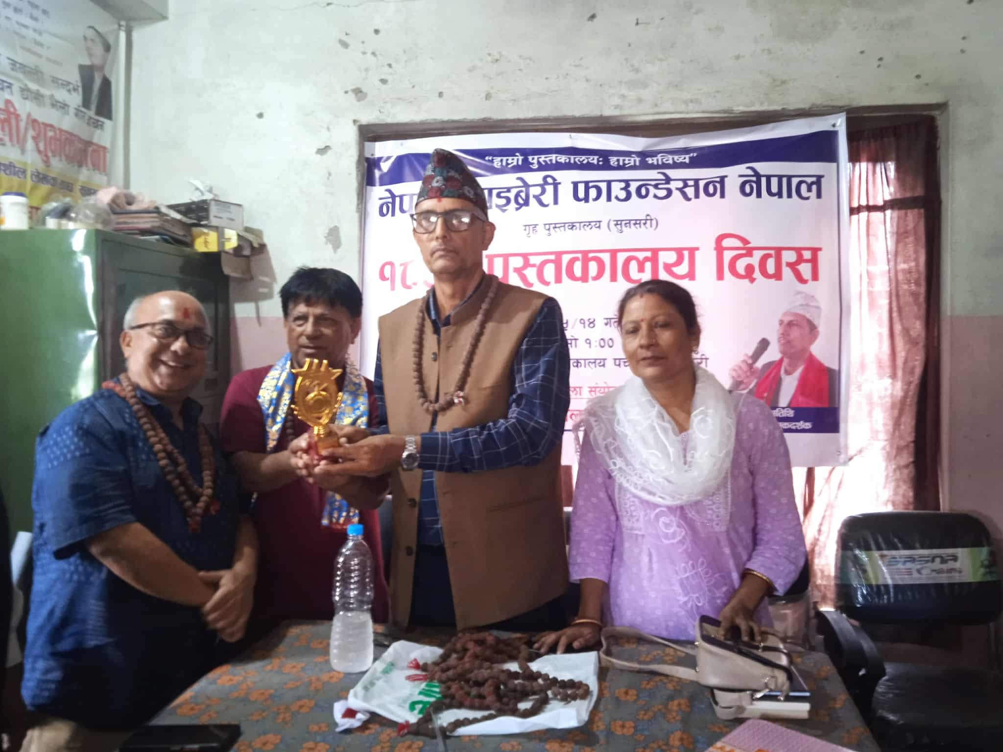 नेपाल लाइब्रेरी फाउन्डेसन नेपाल गृह पुस्तकालय अभियान सुनसरी जिल्ला समितिको आयोजनामा १८ ओैँ राष्ट्रिय पुस्तकालय दिवस कार्यक्रम भव्य र सभ्य रूपमा सम्पन्न भएको छ। ।