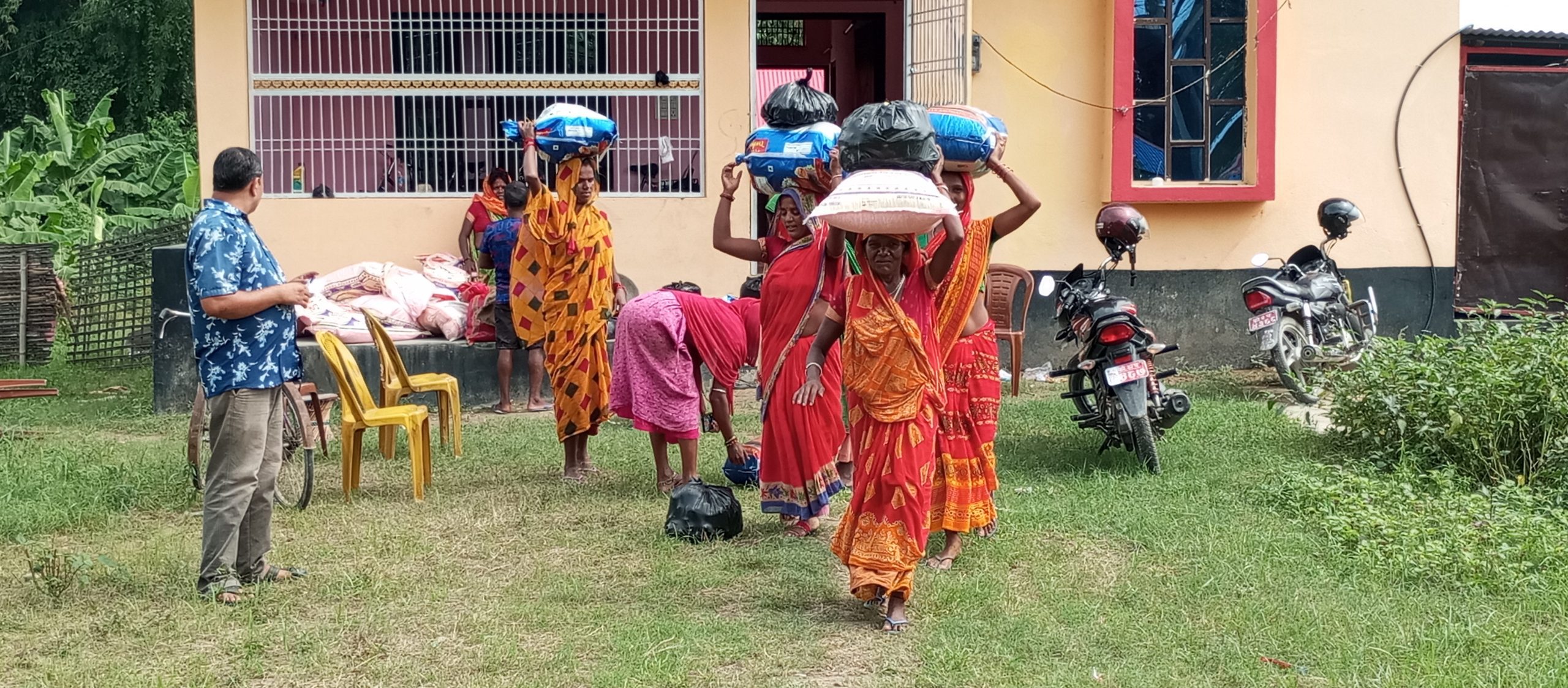 इनरुवा नगरपालिका वडा नम्बर ९ बबियाको सुनसरी खोला किनारमा बस्ने शर्मा समुदायको १२ परिवारलाई खाध्यान्न वितरण गरेको हो।