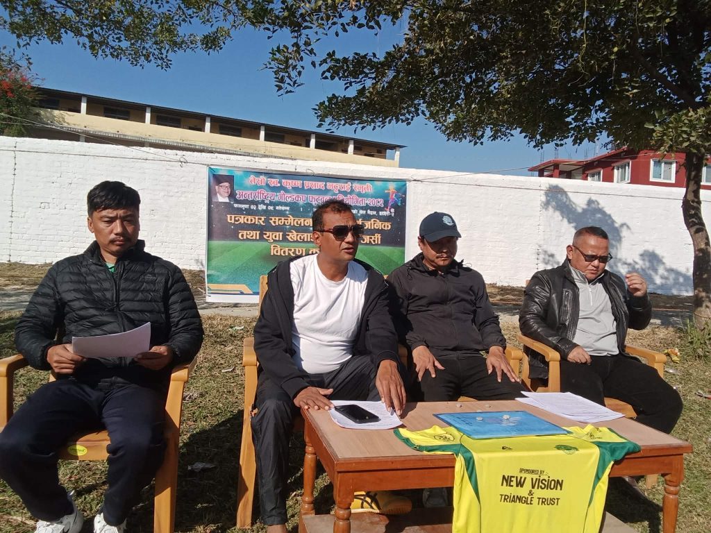 तेस्रो स्वर्गीय कृष्णप्रसाद भट्टराई स्मृति अन्तर्राष्ट्रिय गोल्डकप फागुन २ गतेदेखि सञ्चालन गरेर ९ गतेसम्म चल्नेबारे आयोजकले पत्रकार सम्मेलन गरि जानकारी दिर्दै ।