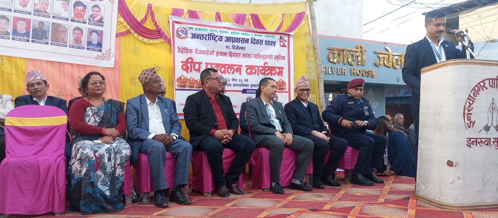 सुनसरीको इनरुवामा डिसेम्बर १८ अर्थात अन्तराष्ट्रिय आप्रवासी दिवसको अवसर पारेर वैदेशिक रोजगारका क्रममा मृत्यु भएका ४१ जनाका परिवारका सदस्यलाई सम्मान गरेको छ । शहिद परिवार र अरुलाई सम्मान गरेको भएपनि वैदेशिक रोजगारका क्रममा मृत्यु भएकाहरुको खासै चर्चा नहुने र परिवारलाई सान्तवना समेत दिने कोही नहुने अवस्थालाई ध्यानमा राखेर सुनसरीका ४१ जनालाई सम्मान गरेको हो । बैदेशिक रोजगारका क्रममा निधन भएका ४१ परिवार सदस्यलाई सम्मान गरेको छ ।