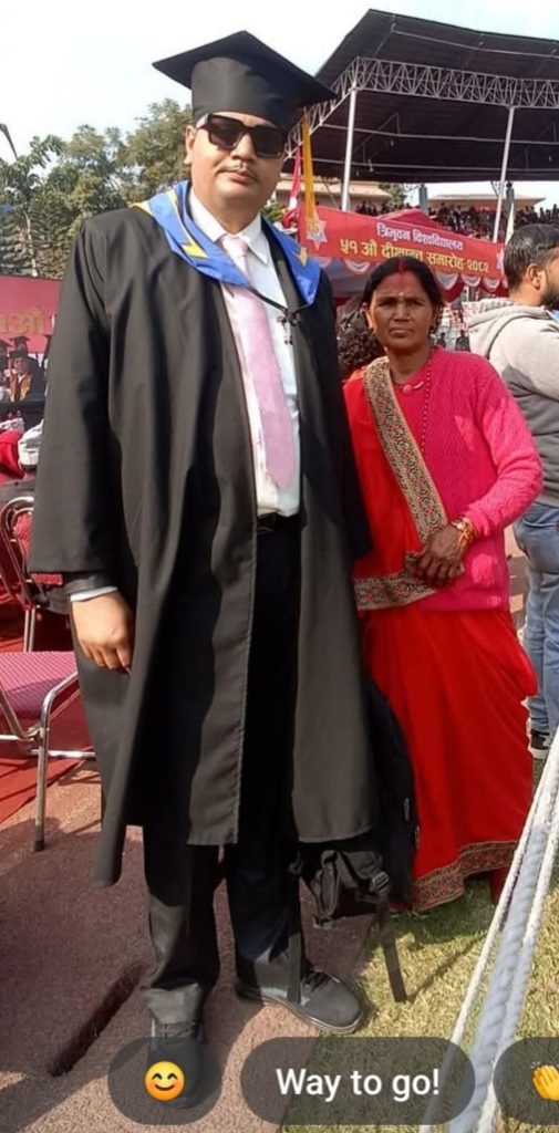 उहाँले सबै दिक्षित हुनुभएकाहरुमा बधाइ सहित थप सफलताको शिखरमा पाइला पुगोस् शुभकामना दिनुभयो। यादवले यो स्नातकोत्तर तहसम्म सफलताको शिखरमा पुर्याउनको लागि प्रमुख भुमिकामा रहनु भएको सबैका बुवा आमा र आफन्तहरू तथा प्रध्यापकहरुमा धन्यवाद सहित बधाई तथा शुभकामना दिनु भयो।