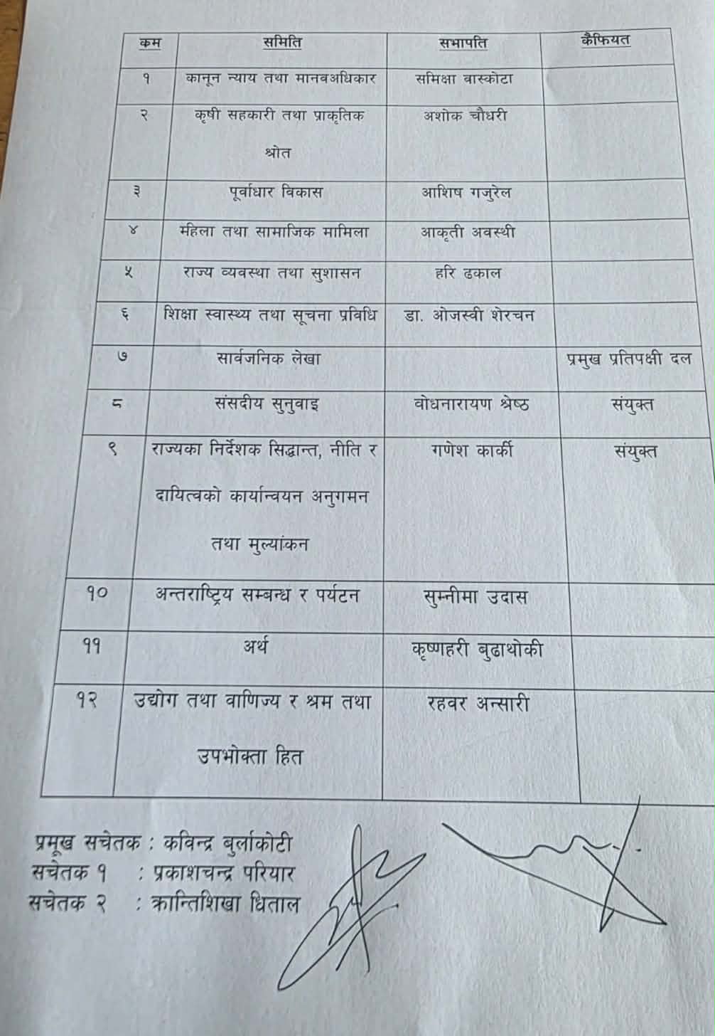 समिति सभापतिमा १२ जनालाई जिम्मेवारी
