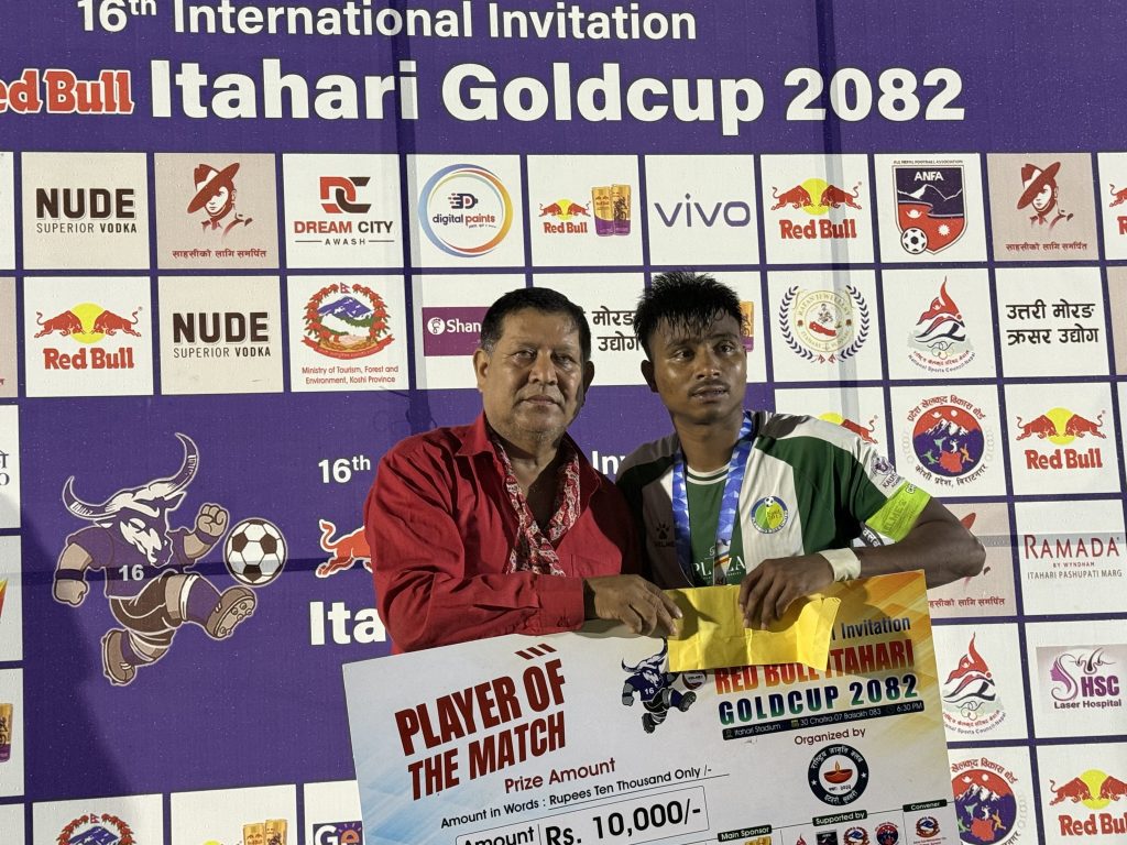 उत्कृष्ट प्रदर्शन गरेका फागुराम थारु प्लेयर अफ द म्याच घोषित भए। उनलाई जिल्ला होटल तथा पर्यटन व्यवसायी संघ सुनसरीका अध्यक्ष तेजबहादुर पुरीले नगद १० हजार रुपैयाँ प्रदान गरे।